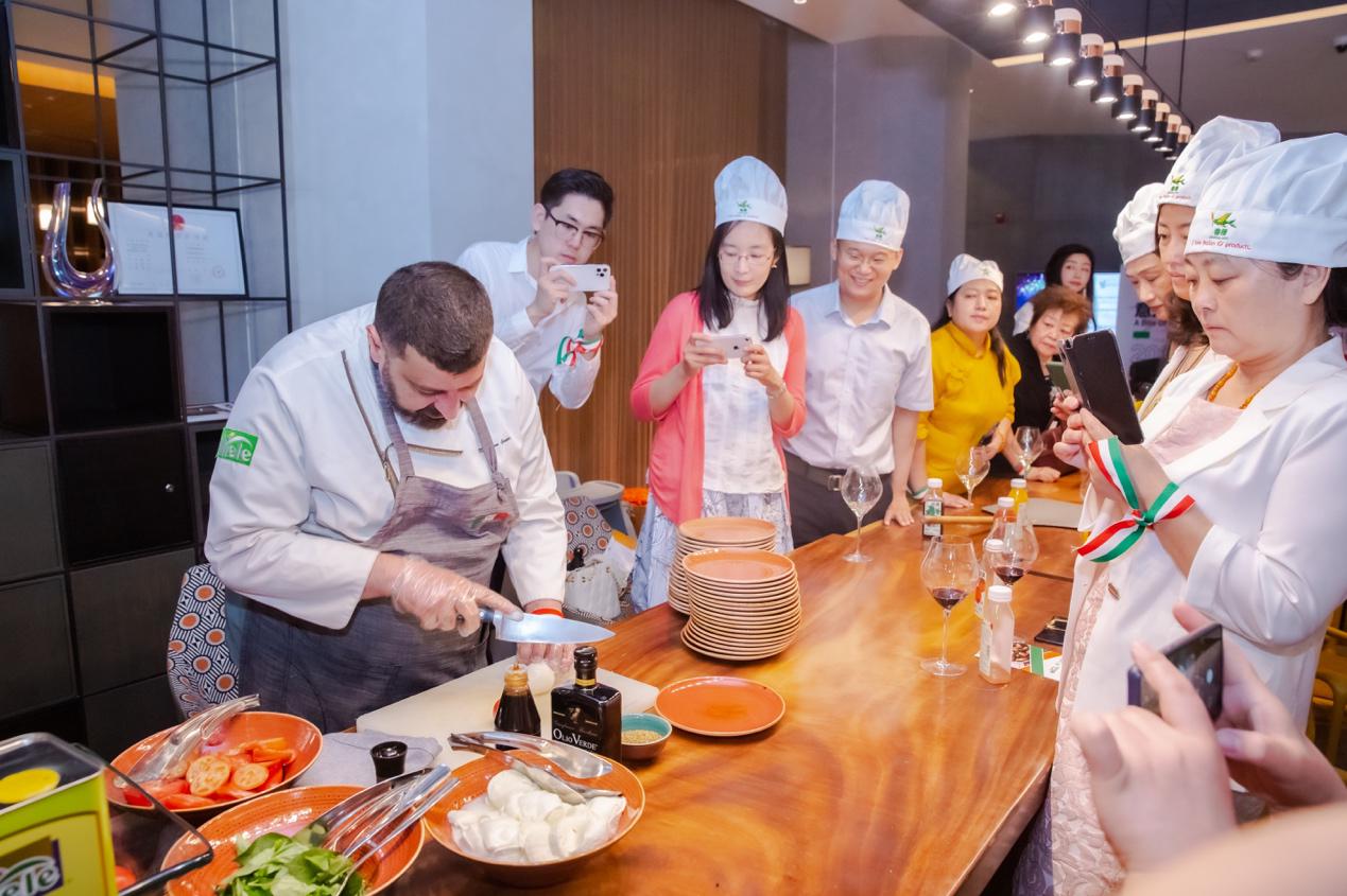 同时,为了让所有到场嘉宾更加全面地感受意大利美食文化的魅力,现场还组织了意式沙拉制作厨艺大赛以及教学意大利传统玛格丽特披萨的制作方法。