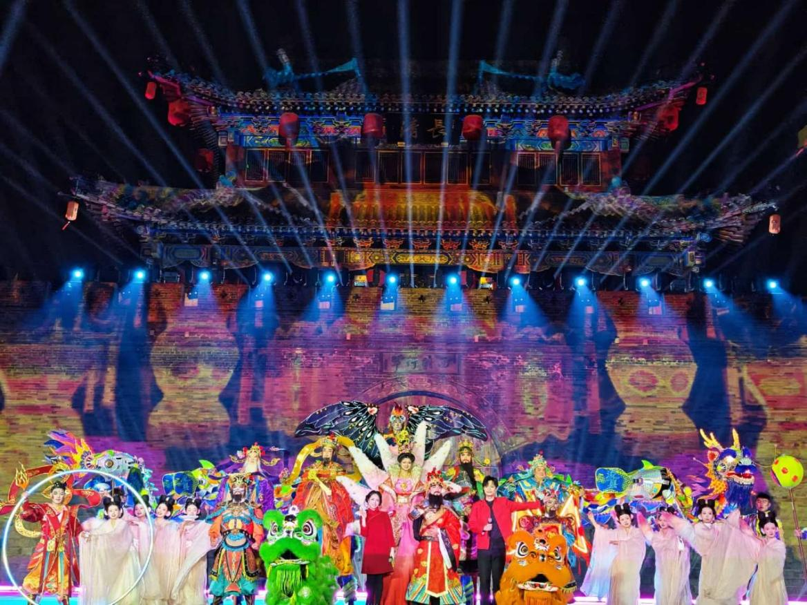 “夜赏黎阳城”行浸式体验以古城为舞台,沿途进行高跷、竹马、鼓舞等热闹的社火巡游,观众可以体验到移步换景、古今交融的行浸式观演感受。